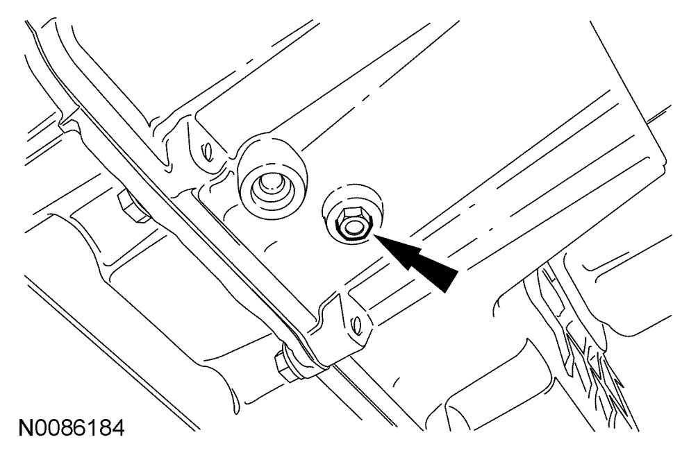 10. Position the transmission fluid cooler tube bracket and transmission fluid cooler tubes in place and install the 2 nuts.