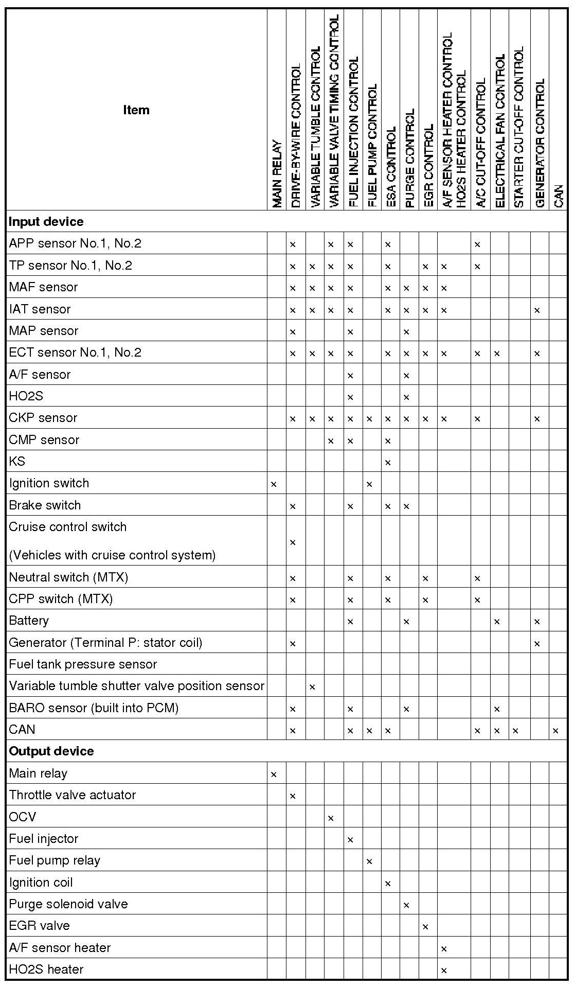 Control System Device And Control Relationship Chart