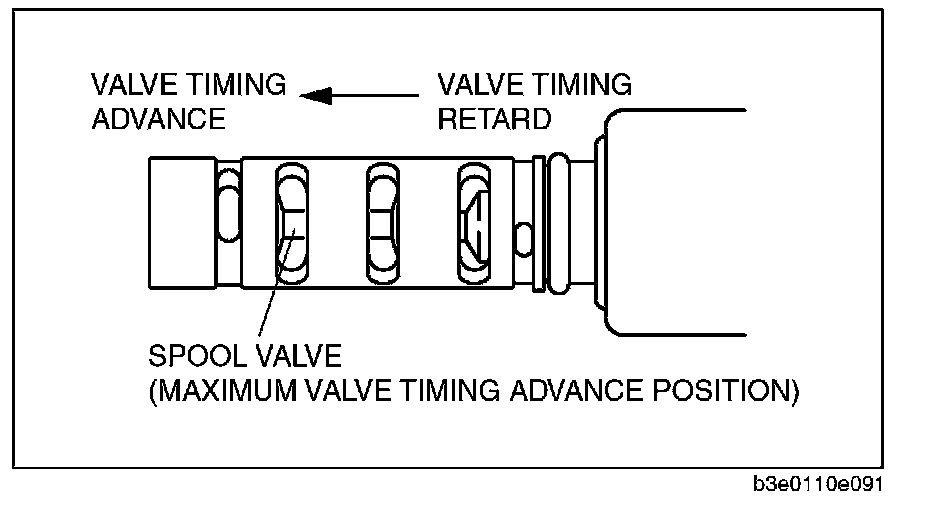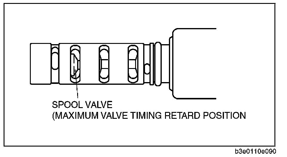 3. Stop applying battery positive voltage and verify that the spool valve returns to the maximum valve timing retard position.