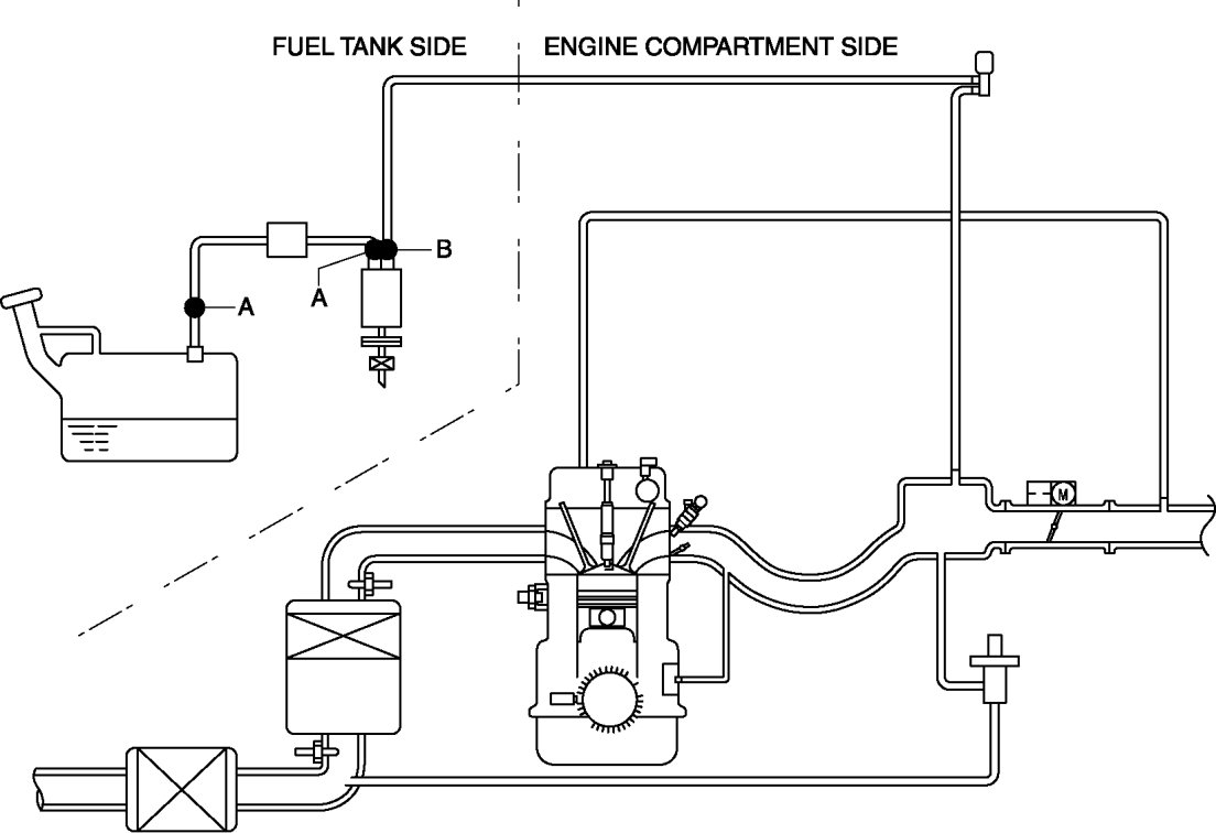 - To prevent evaporative gas leakage, be sure not to damage the connecting part between the charcoal canister and pipe, and the locks between the quick release connector and retainer. If any of them are damaged, replace the charcoal canister or hose with a new one.