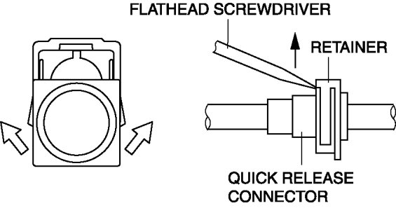 - The quick release connector can be removed by pushing the center of the retainer tabs.