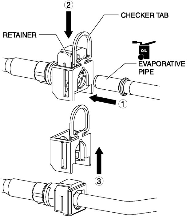 - A checker tab is integrated with the quick release connector for new evaporative hoses. Remove the checker tab from the quick release connector after the connector is completely engaged with the evaporative pipe.