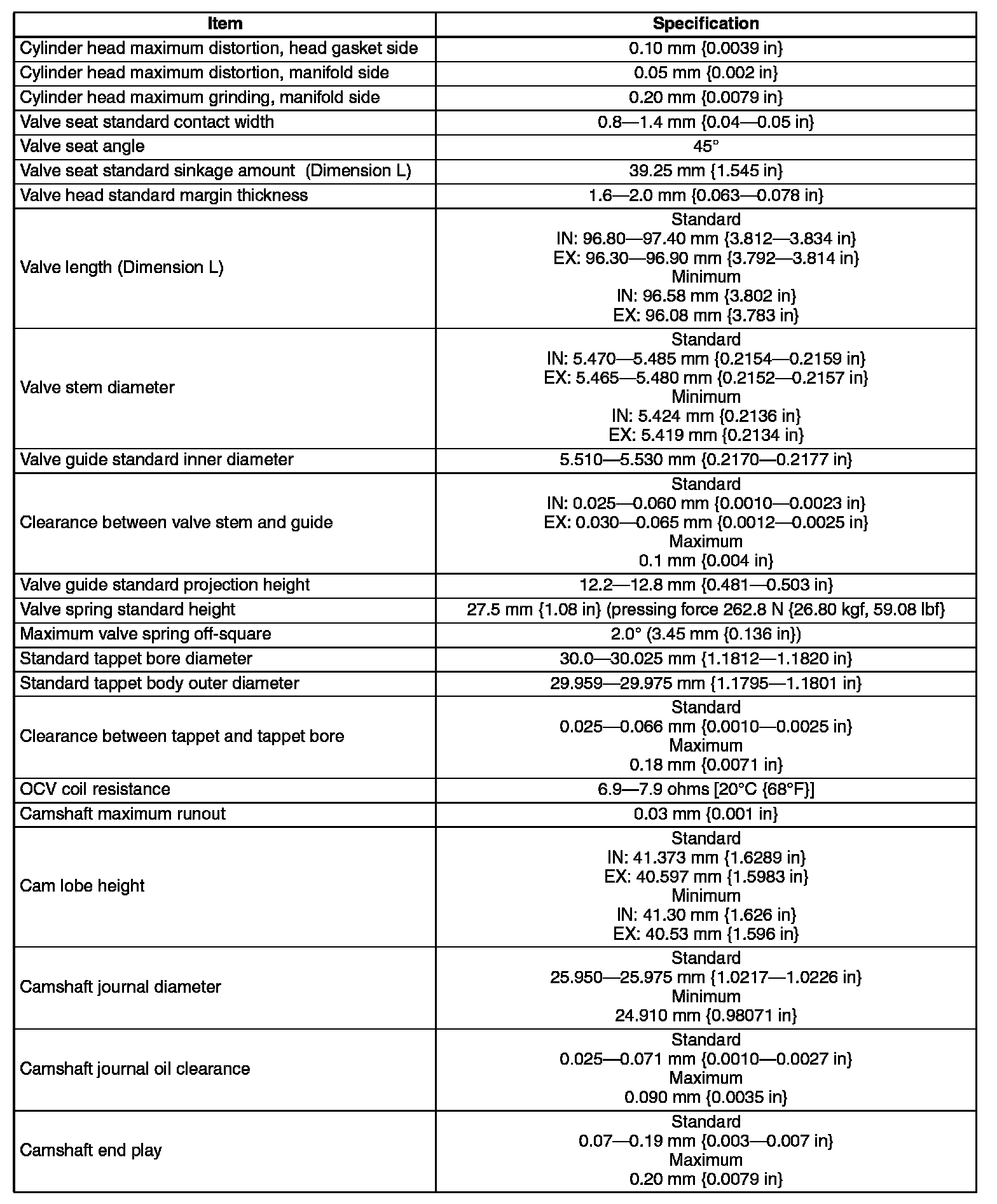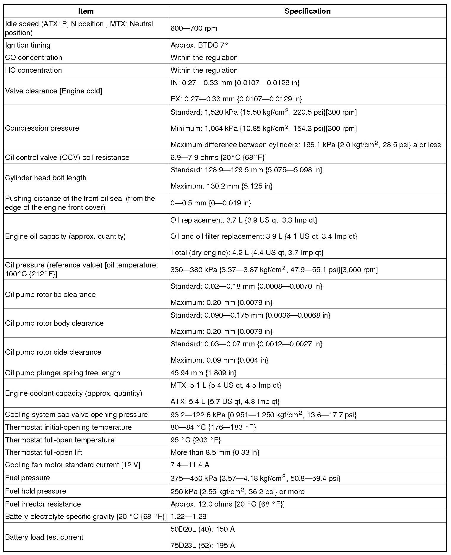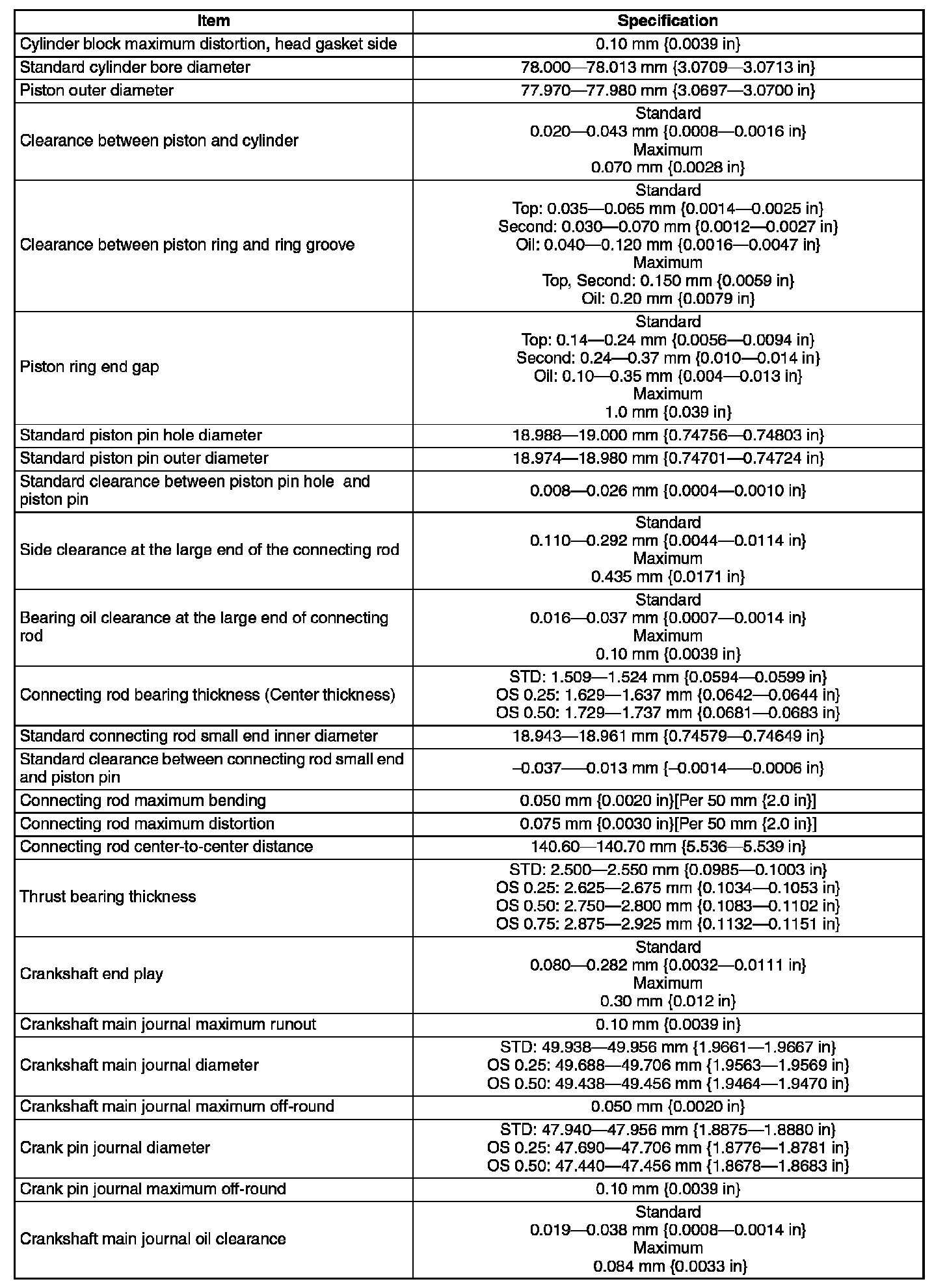 ENGINE TECHNICAL DATA (Overhaul Manual)