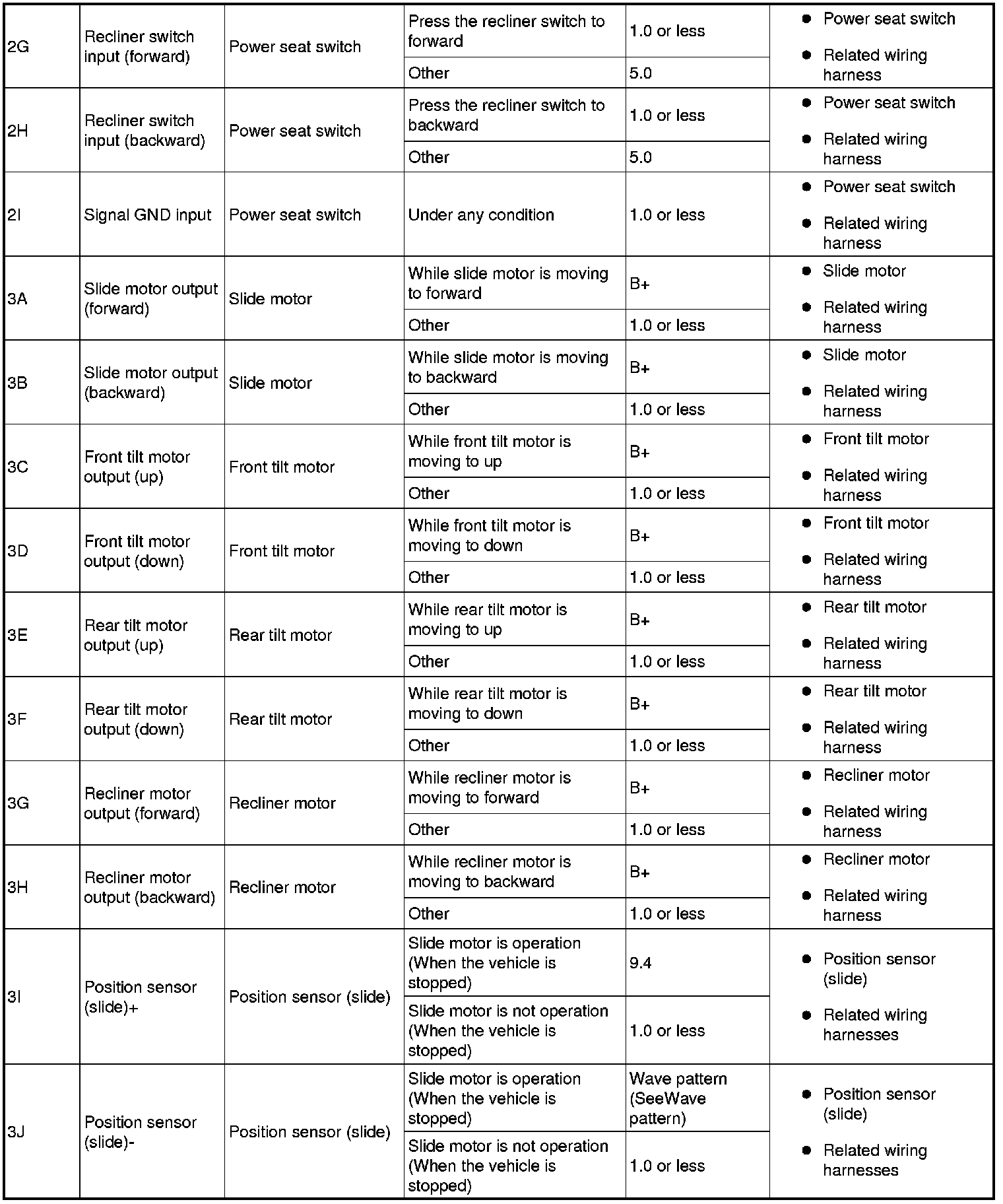 - Position sensor (reclining) signal:3P (+) -> body ground (-)