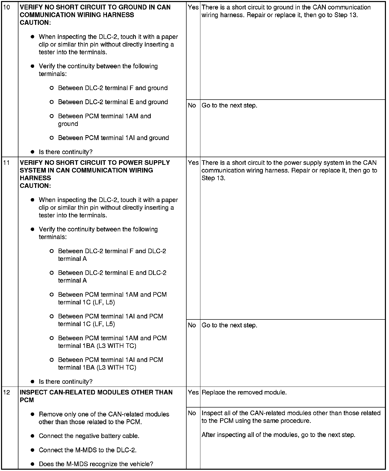 - Possible causes of communication errors between the M-MDS and vehicle include communication circuit interruption due to an open circuit in the CAN communication wiring harness, or poor contact of connector terminals, or a BUS OFF condition due to a short circuit in the CAN communication wiring harness.