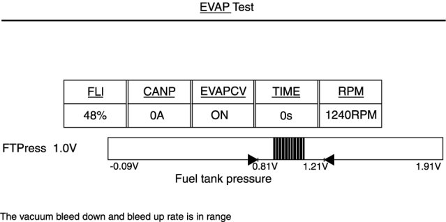 - Fuel Level must be maintained within 15%-85%. PCM will cancel the EVAP Test If the Fuel Level is lower than 15% or higher than 85%.