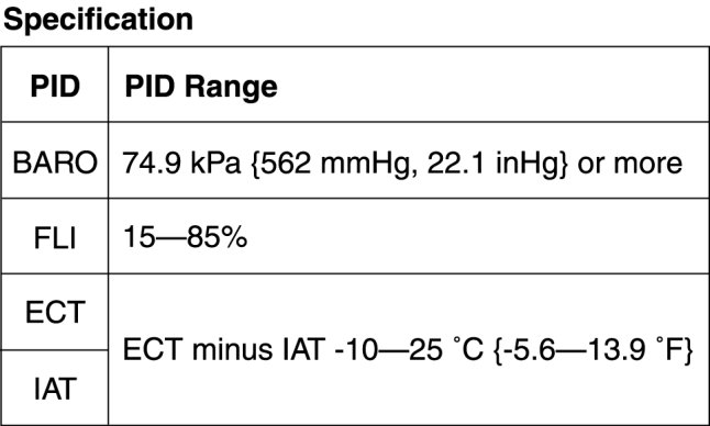 - Verify that all PIDs are within the following specifications.