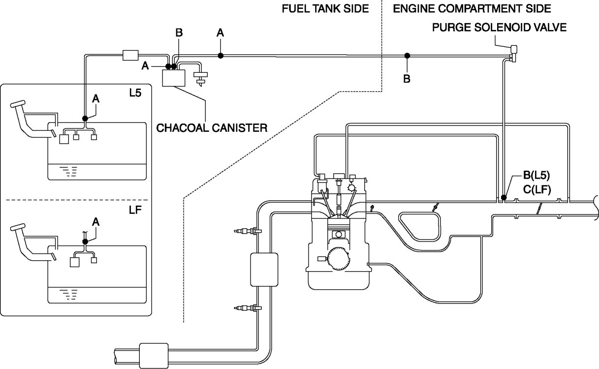 1. Inspect the evaporative hose and evaporative pipe sealing surface for damage and deformation.
