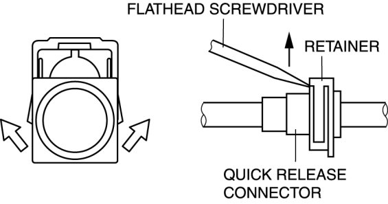 - The quick release connector can be removed by pushing the center of the retainer tabs.