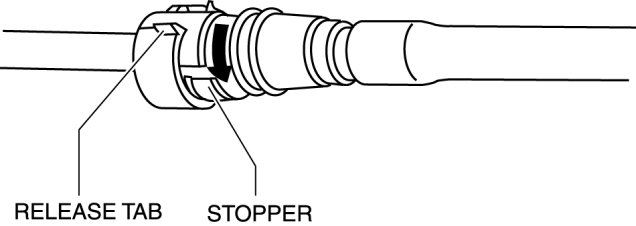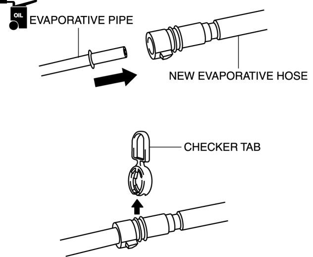 - A checker tab is integrated with the quick release connector for new evaporative hoses. Remove the checker tab from the quick release connector after the connector is completely engaged with the evaporative pipe.