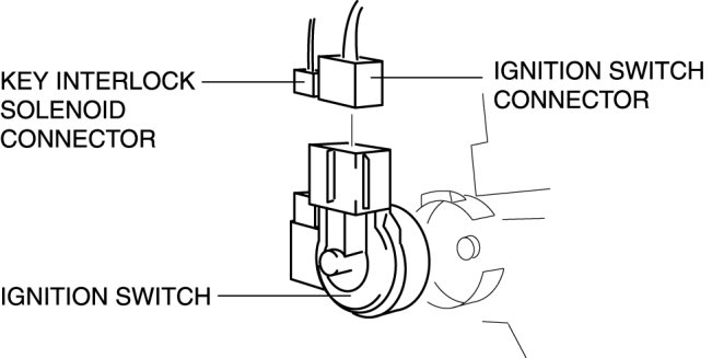5. Disconnect the ignition switch connector and key interlock solenoid connector.