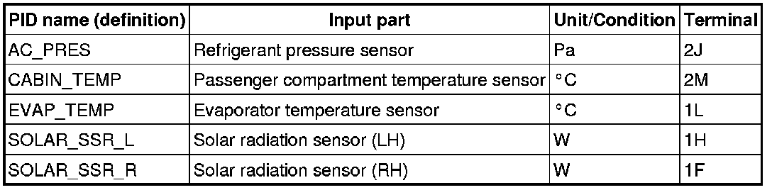 PID/DATA MONITOR TABLE