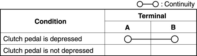 - If the continuity is not as indicated in the table, replace the starter interlock switch.