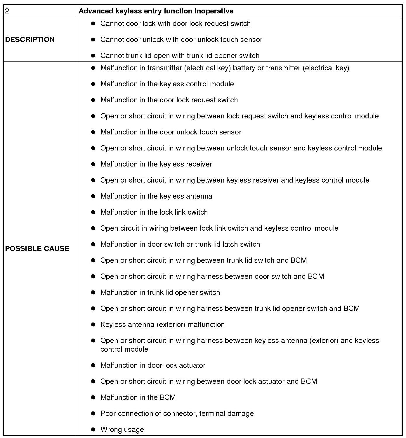 No. 2 Advanced Keyless Entry Function Inoperative - Advanced Keyless Entry And Push Button Start System