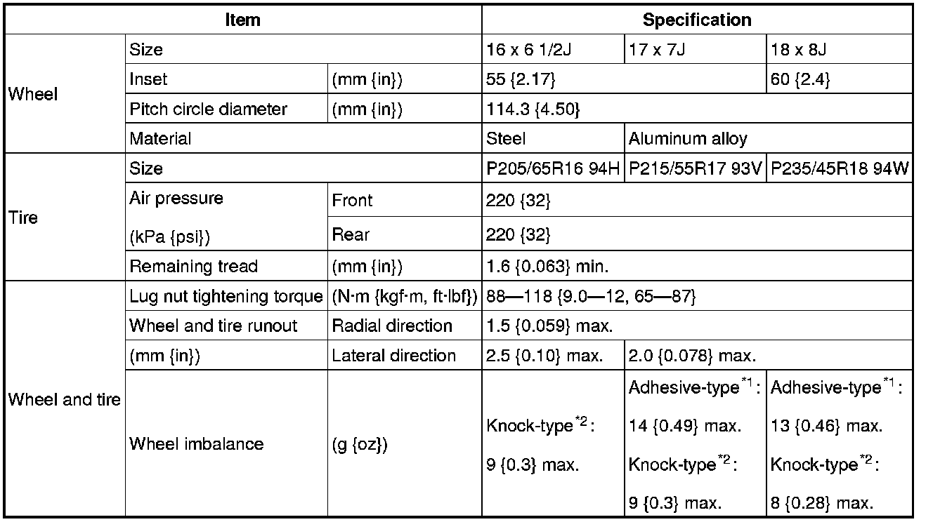 One balance weight: 60 g {2.12 oz} max. If the total weight exceeds 100 g {3.53 oz} on one side, rebalance after moving the tire around on the rim. Do not use three or more balance weights.