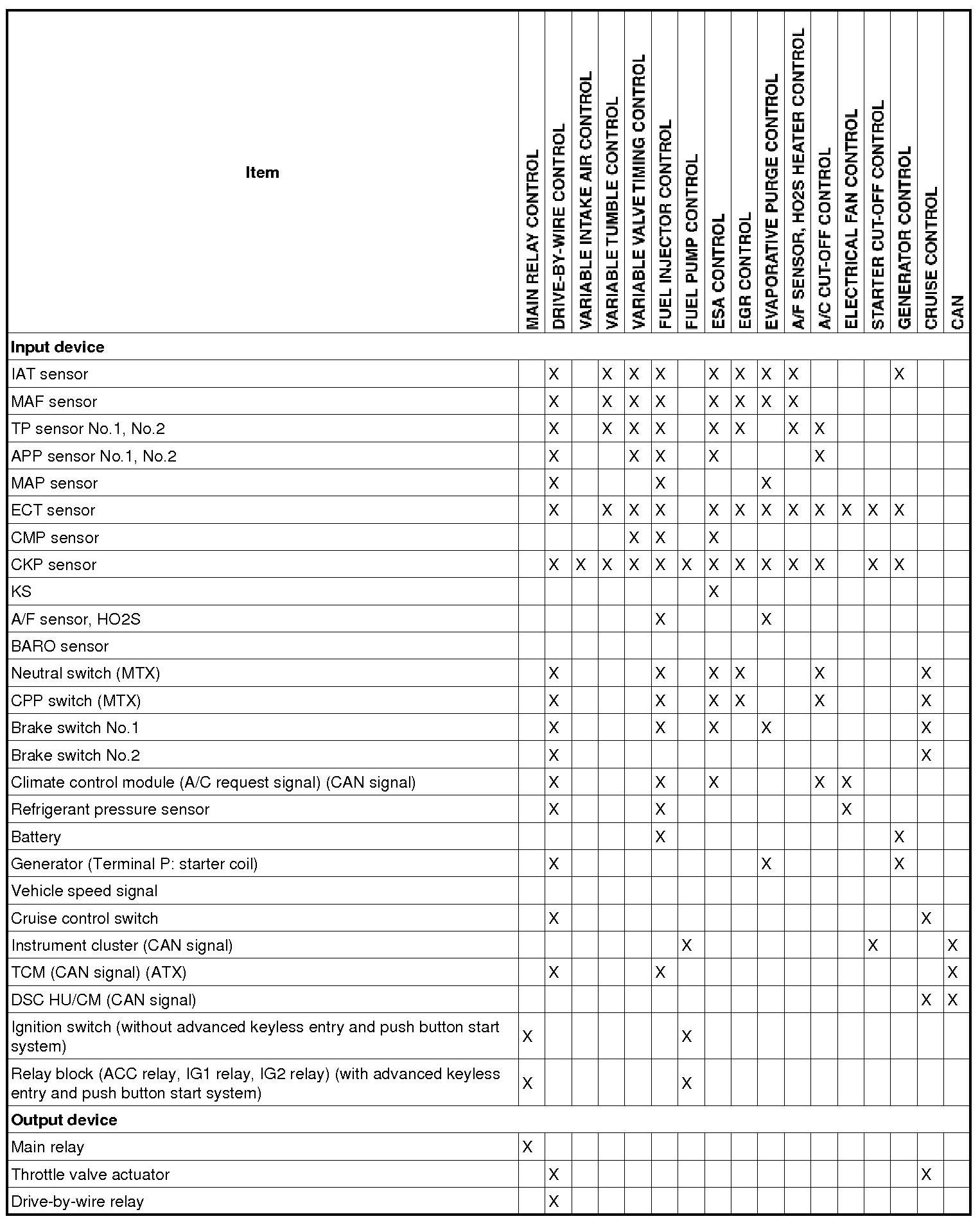 Control System Device And Control Relationship Chart