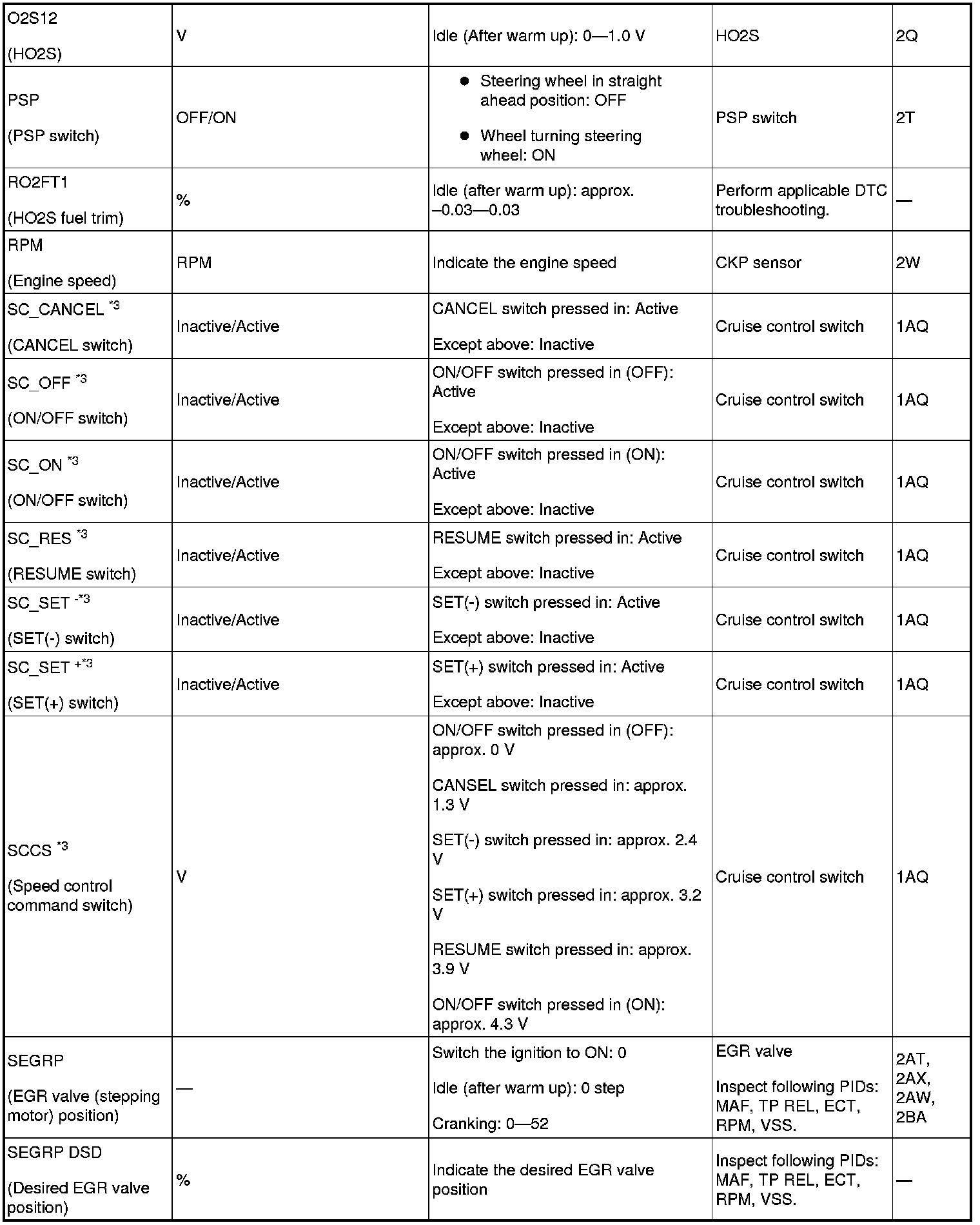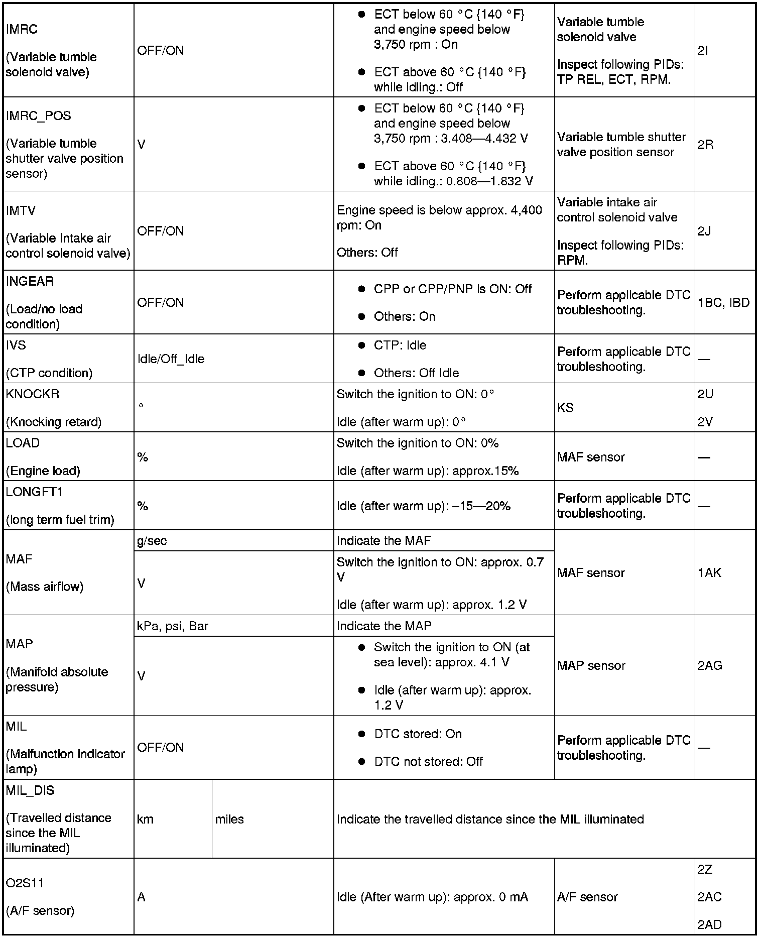 - Following PIDs are for the ATX models. If inspects for following PIDs, On-Board Diagnostic System PID/Data Monitor Inspection