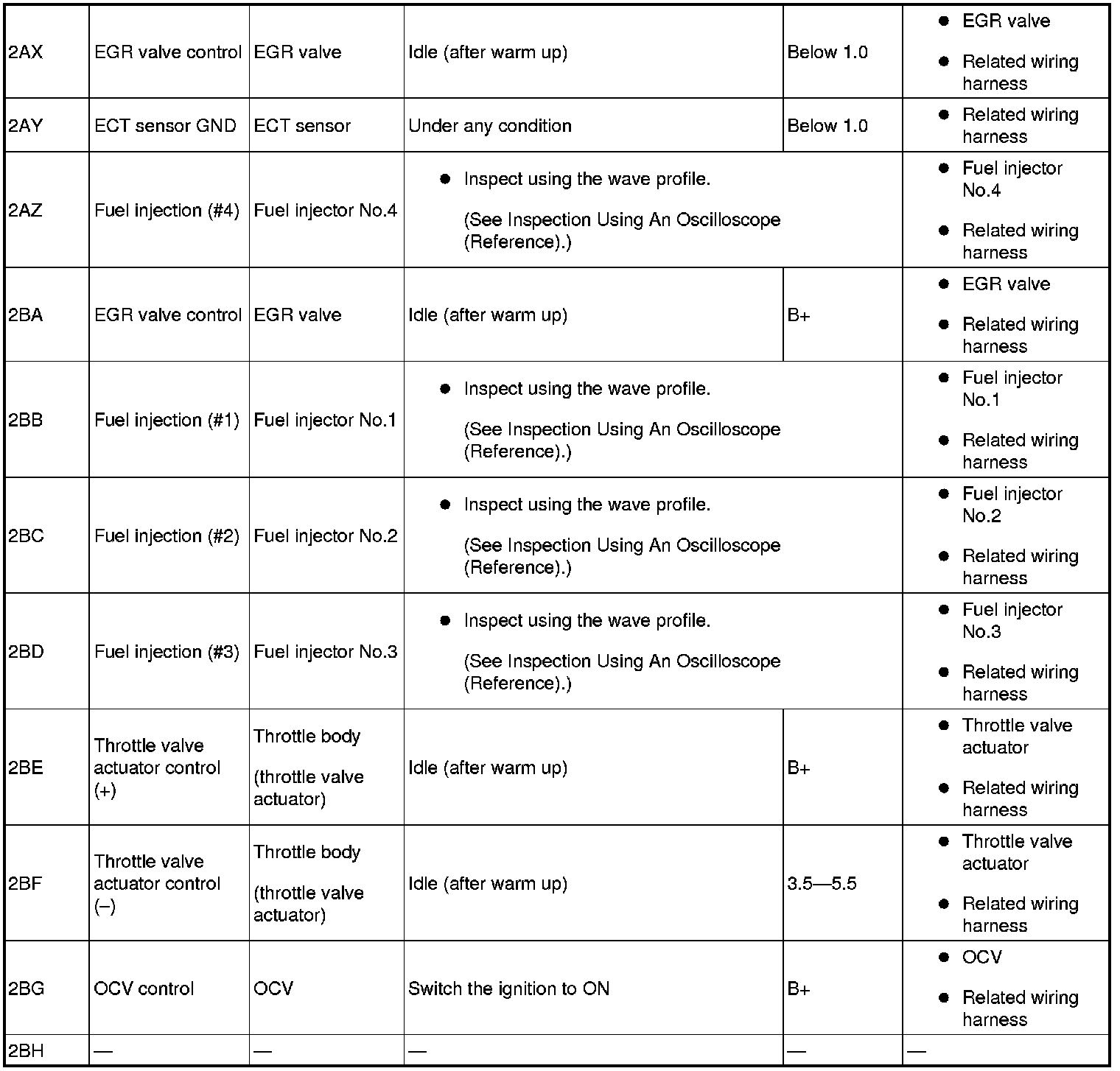 - Fuel Injection No.1: 2BB(+)-body ground(-)