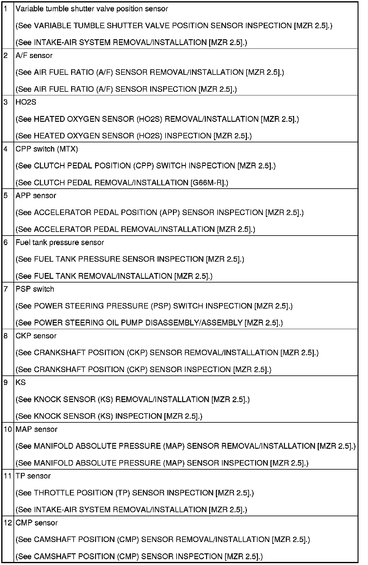 CONTROL SYSTEM LOCATION INDEX [MZR 2.5]