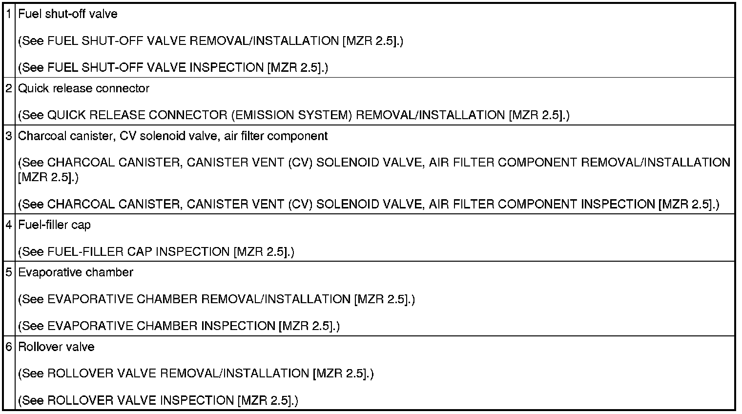 EMISSION SYSTEM LOCATION INDEX [MZR 2.5]