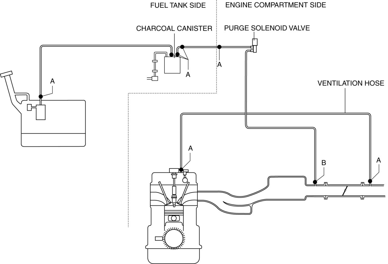 1. Inspect the evaporative hose and evaporative pipe sealing surface for damage and deformation.