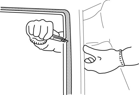 7. Cut away the old sealant using a utility knife so that 1-2 mm {0.04-0.07 in} thickness of sealant remains along the perimeter of the frame.