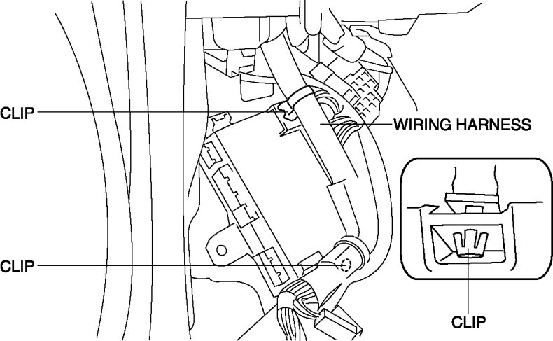12. Detach the clips and remove the vehicle wiring harness.