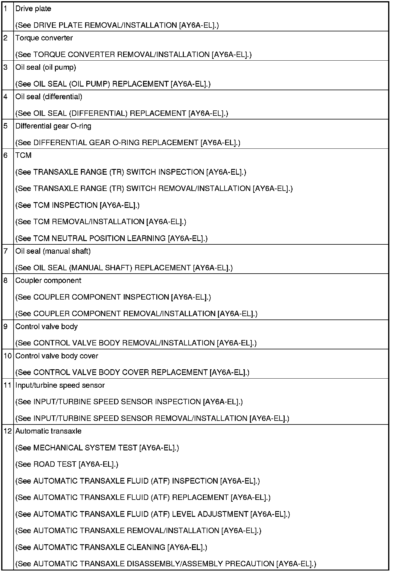 AUTOMATIC TRANSAXLE LOCATION INDEX [AY6A-EL]