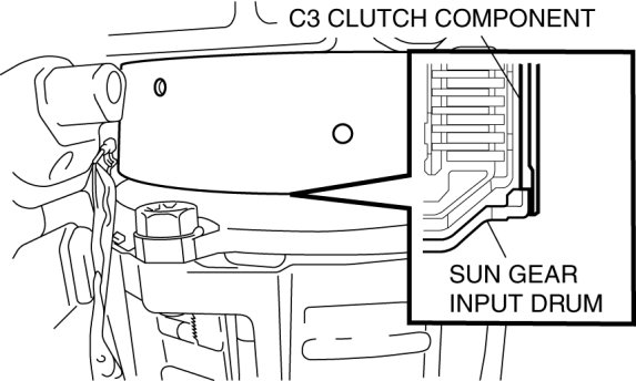 - Install the C3 clutch component so that it engages with the sun gear input drum as shown in the figure.