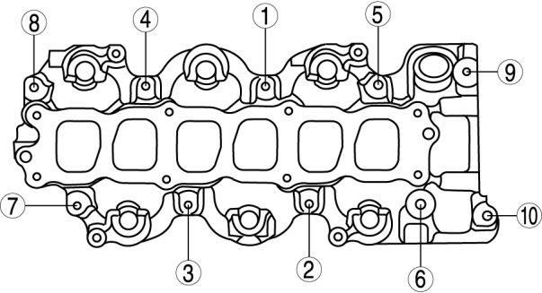 Tighten the intake manifold installation bolts in the order shown.Intake manifold installation bolt tightening torque 9-11 Nm {92-112 kgf-cm, 80-97 in-lbf}