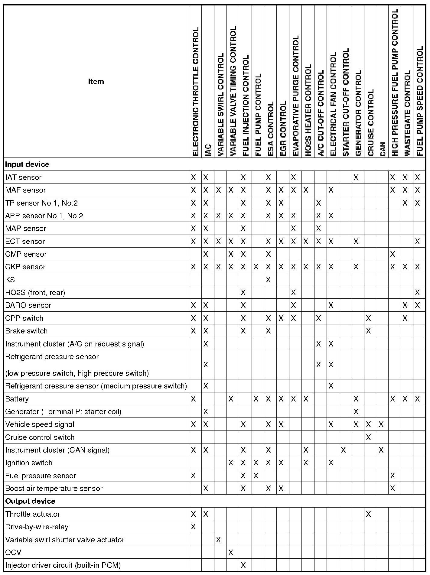 Control System Device And Control Relationship Chart