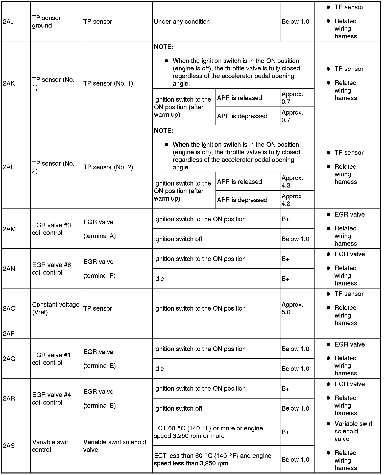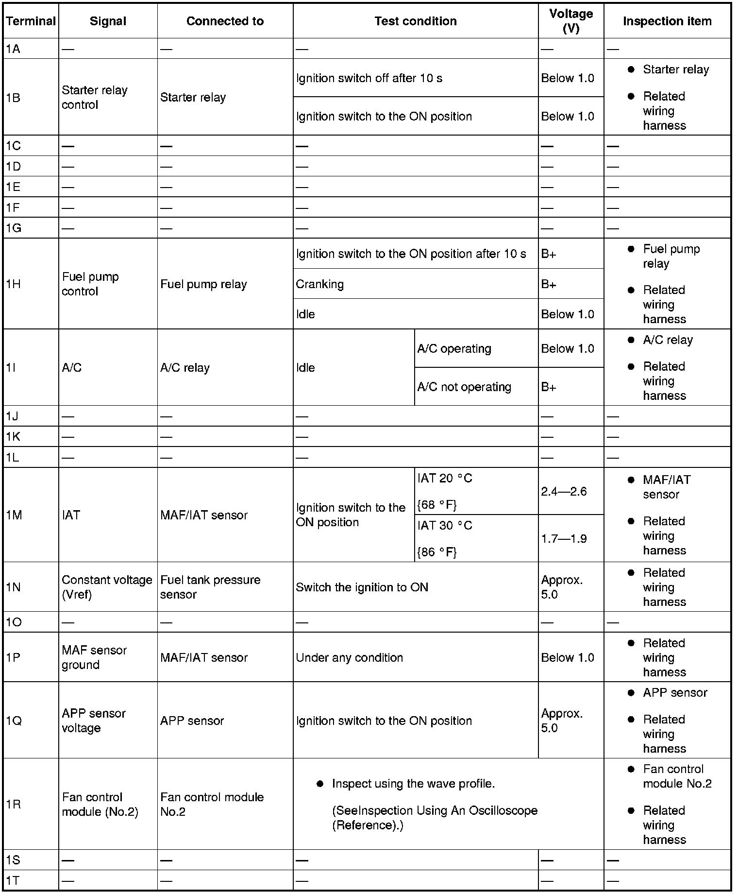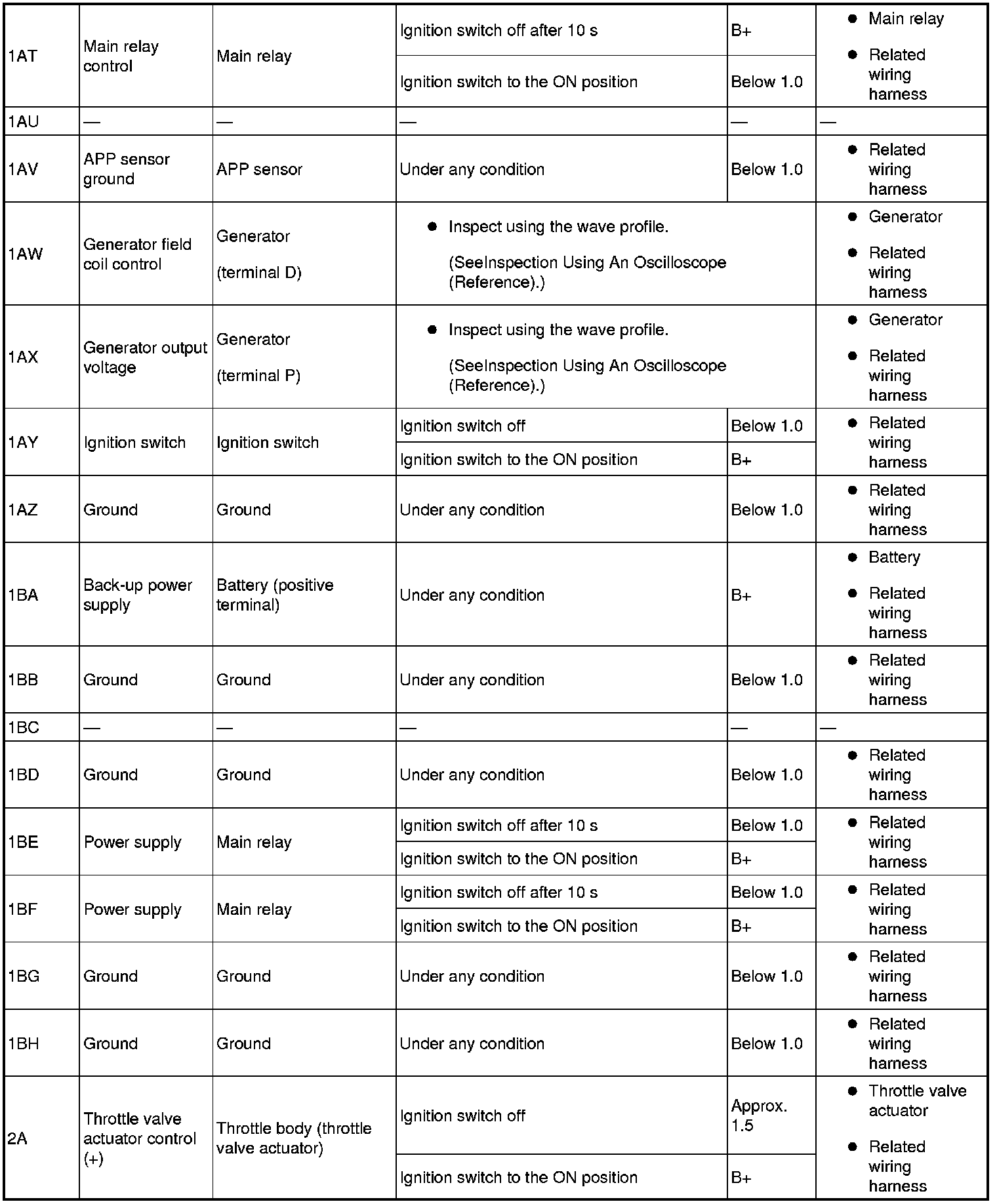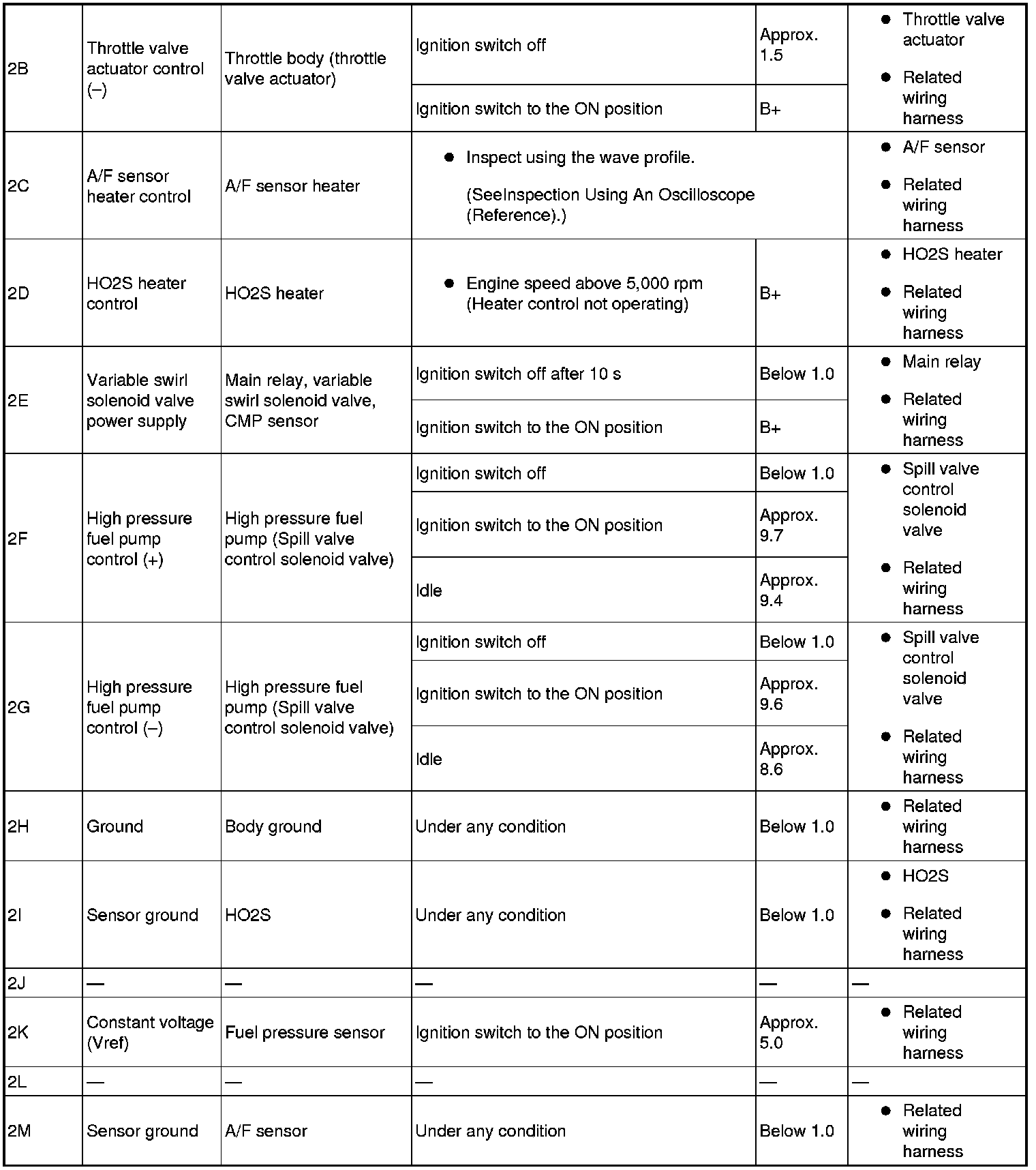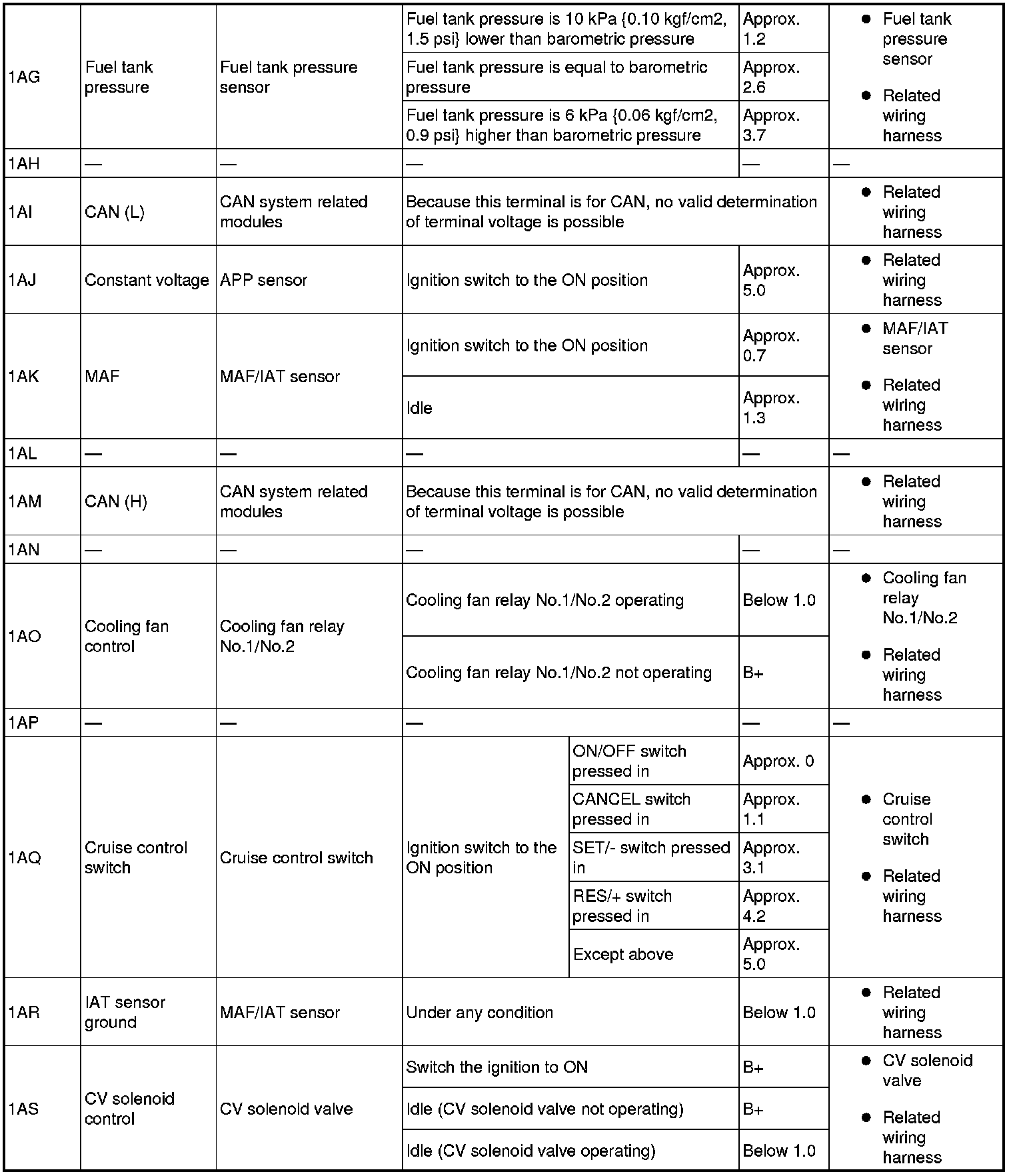 - The PCM terminal voltage can vary with the conditions when measuring and changes due to aged deterioration on the vehicle, causing false diagnosis. Therefore determine comprehensively where the malfunction occurs among the input systems, output systems, and the PCM.