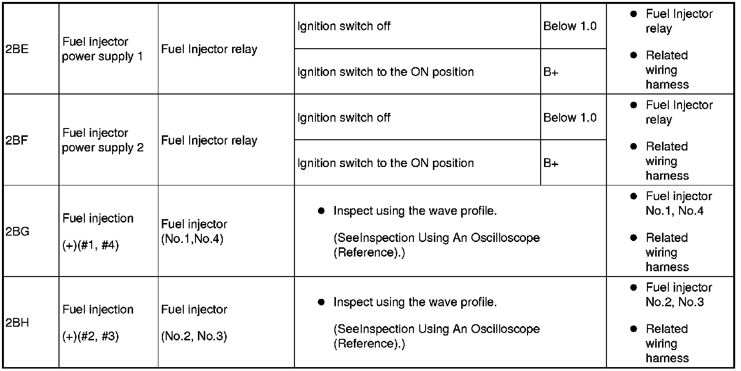 - Fuel injection No.1, No.4: 2BG (+)-body ground (-)