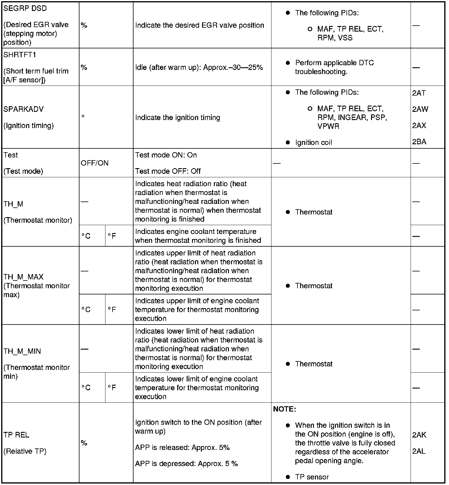 - PIDs for the following parts are not available on this model. Perform the specific inspections for the following parts: