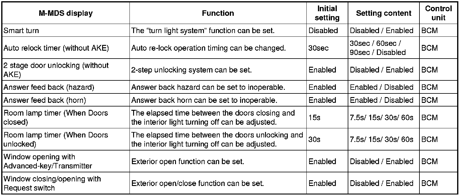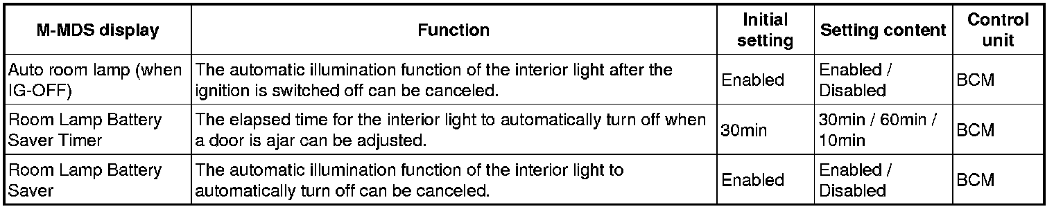 - Select "Personality", "Interior lighting", "Washer/ Wiper", "Security" or "Power Door Locks".