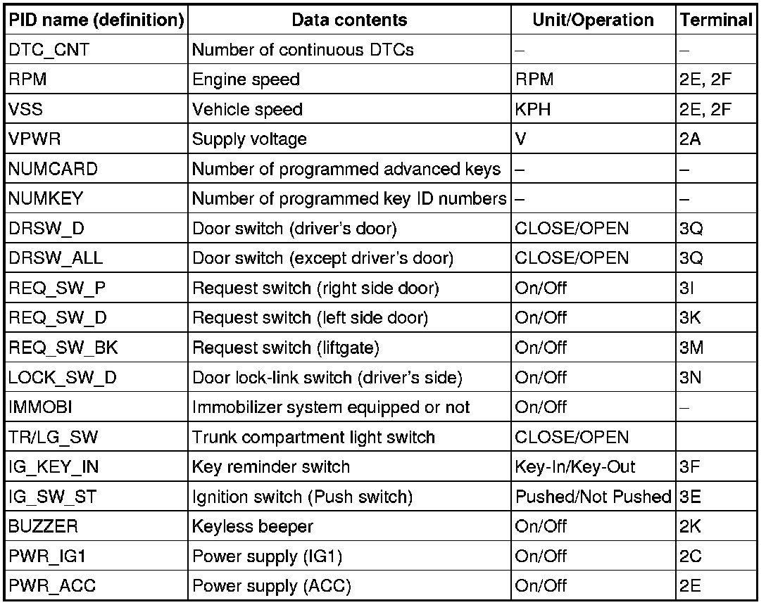 PID/DATA MONITOR INSPECTION [ADVANCED KEYLESS ENTRY AND START SYSTEM]