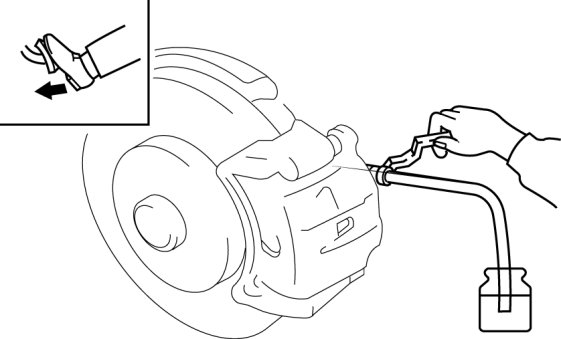 1. Remove the bleeder cap on the brake caliper, and attach a vinyl tube to the bleeder screw.