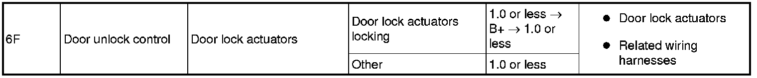- Lock/unlock input (rear door lock-link switch (RH)): 5E (+) -> body ground (-)
