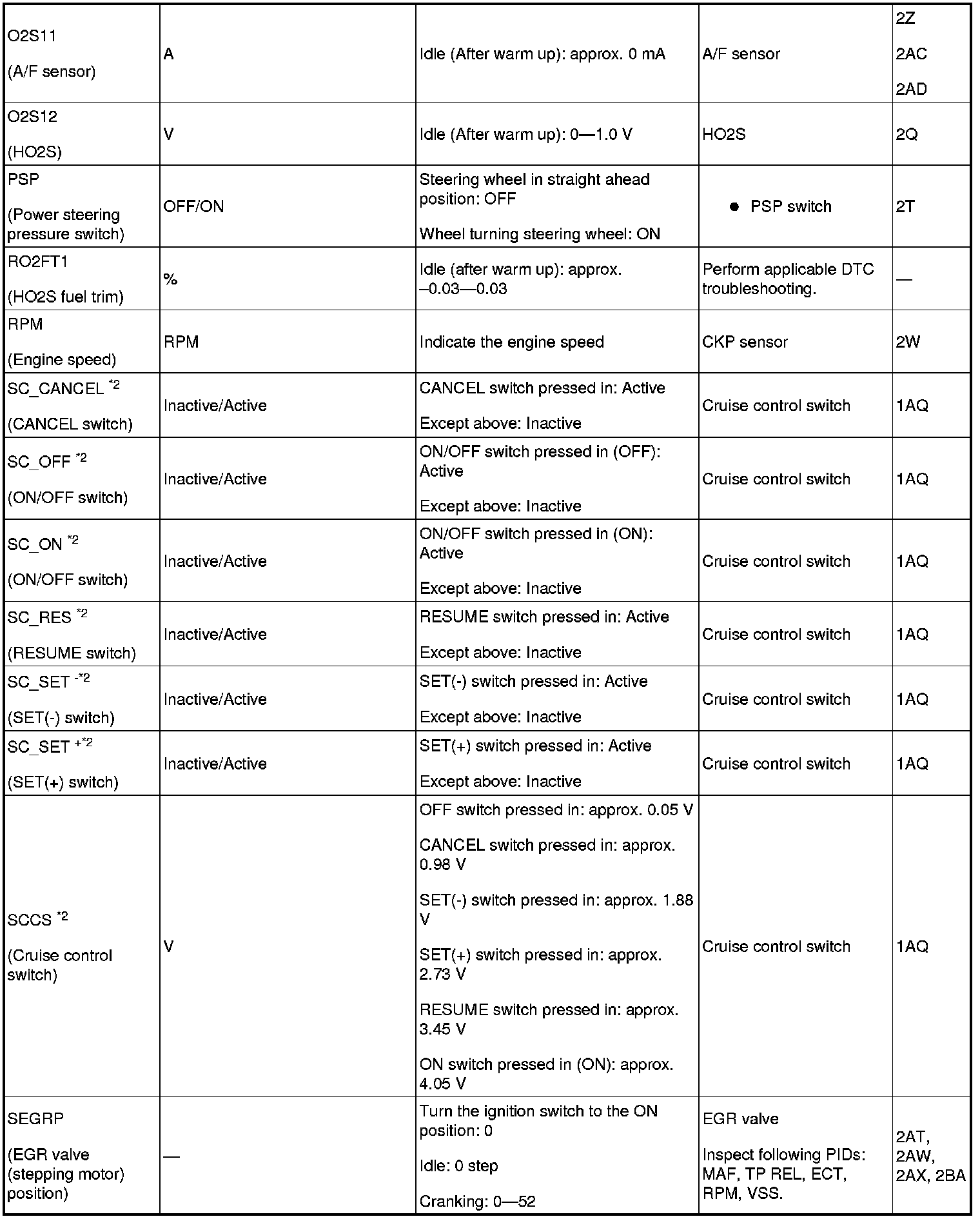 - PIDs for the following parts are not available on this model. Go to the appropriate part inspection.