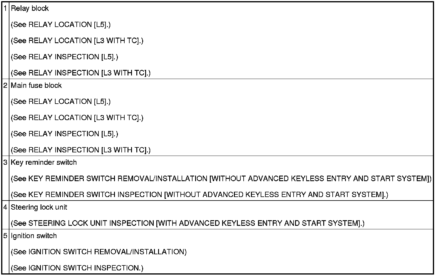 Ignition Switch: Locations