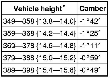 - Unloaded vehicle: Fuel tank is full. Engine coolant and engine oil are at specified level. Jack and tools are in designated position.