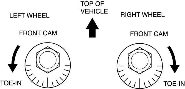 2. Rotate the adjusting cam bolt in either direction to adjust the toe-in.