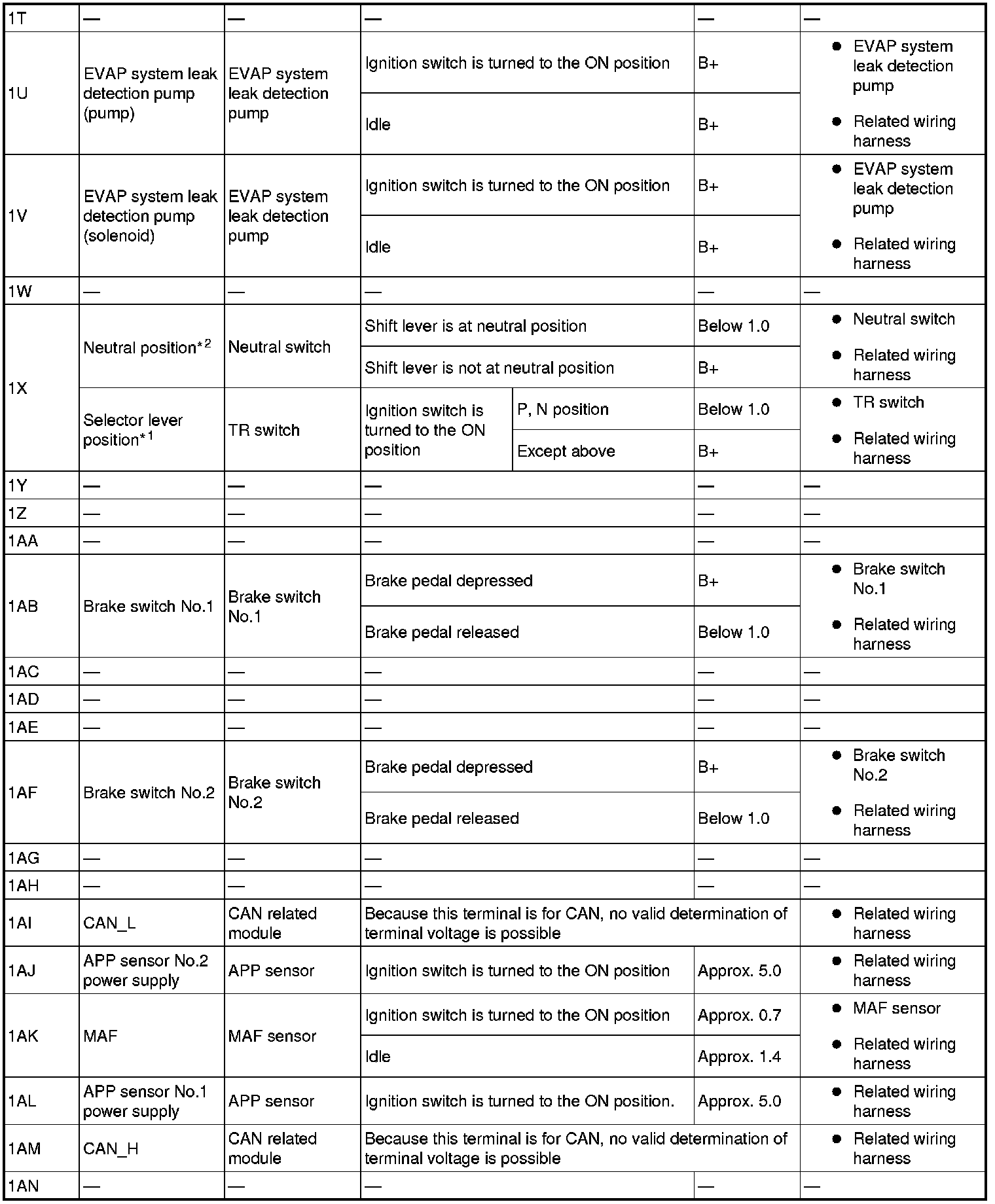 - For input/output signals except those of the monitoring items, use a voltmeter to measure the PCM terminal voltage.