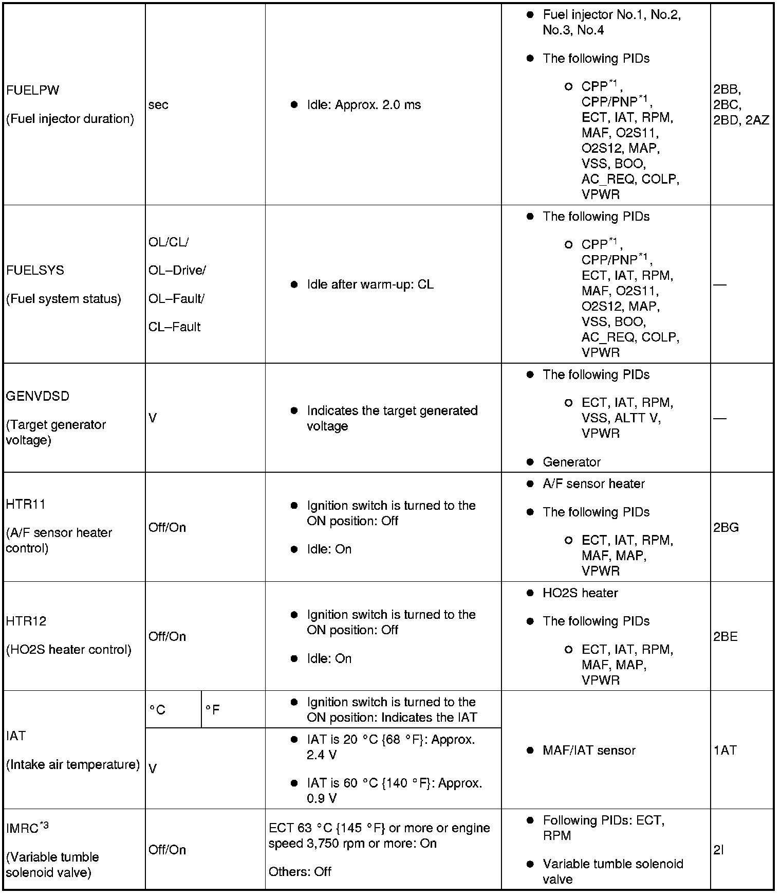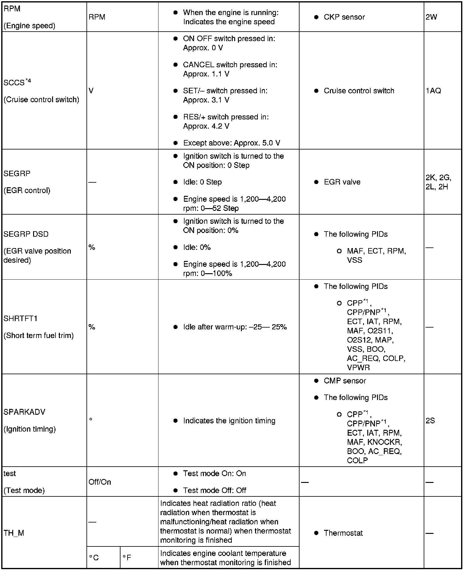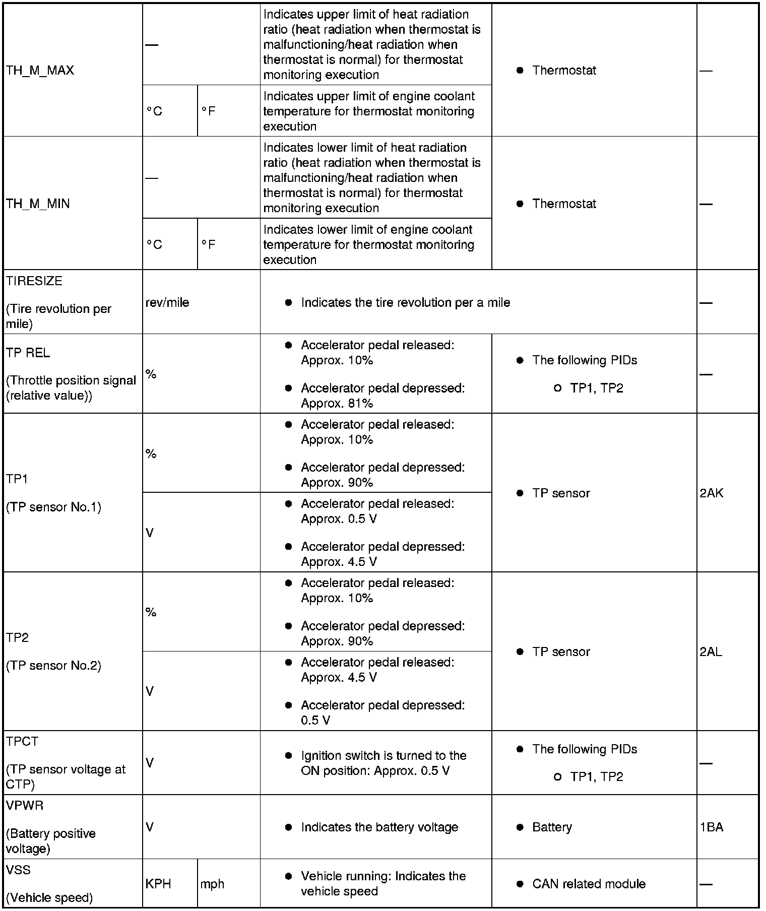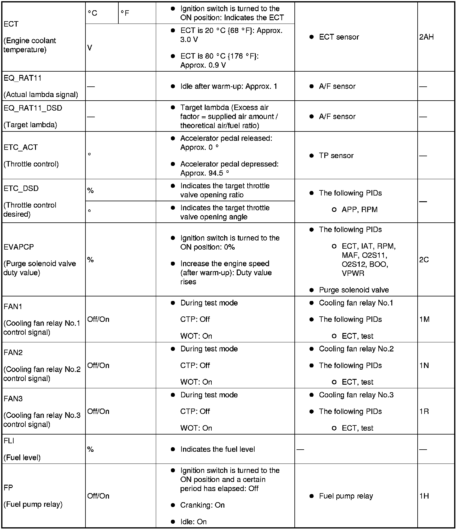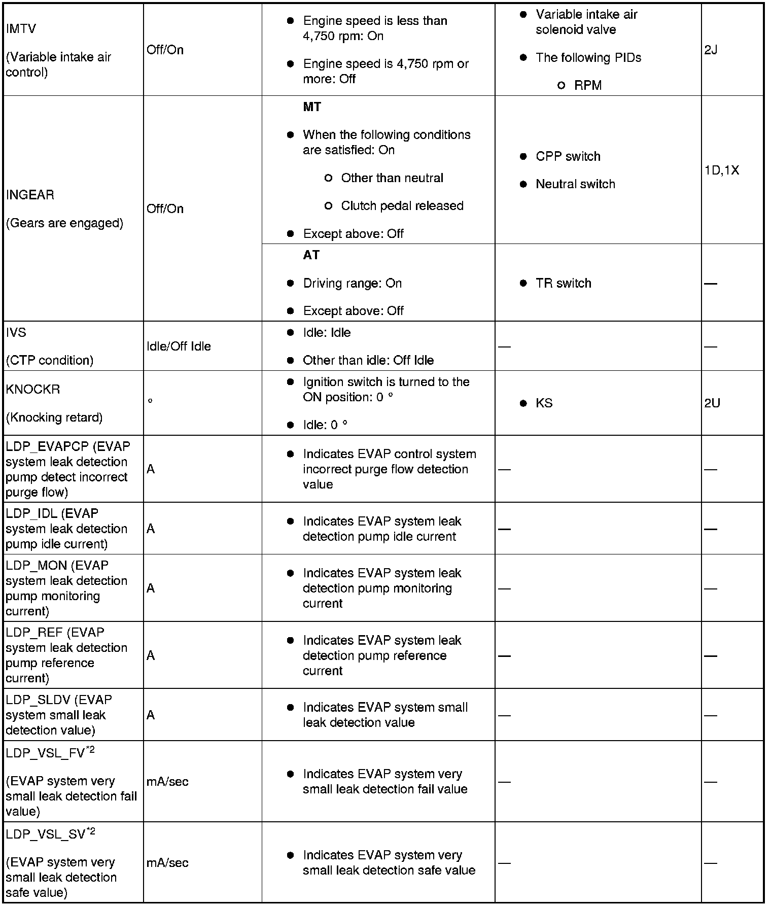 - If PID value is not within the specification, follow the instructions in "Inspection item (s)" column.