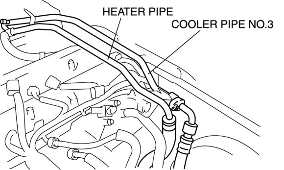 e. Move the cooler pipe No.3 and heater pipe slightly out of the way.