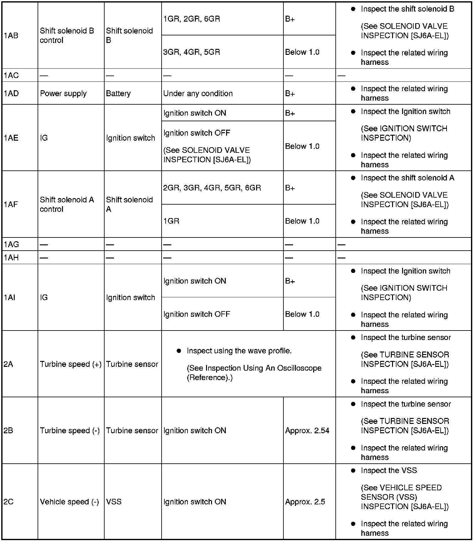 - Use the ground of terminal 1P and 1X of the TCM when measuring terminal voltage, as an error may occur when connecting the negative circuit tester to ground.