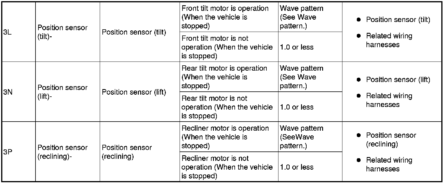 - Position sensor (reclining) signal:3P (+) -> body ground (-)