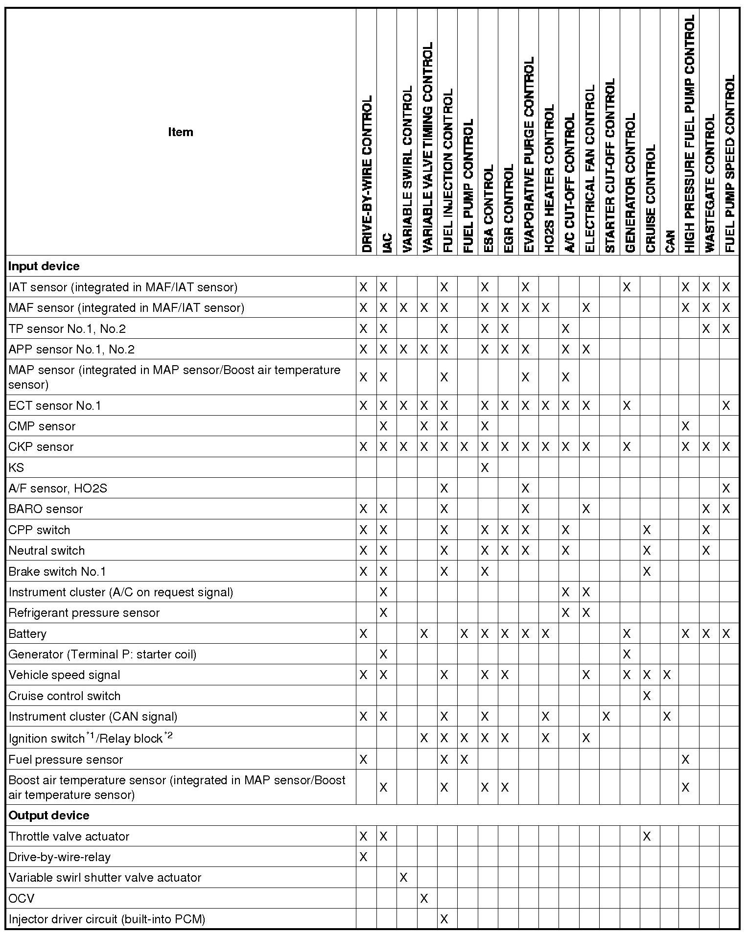 Control System Device And Control Relationship Chart