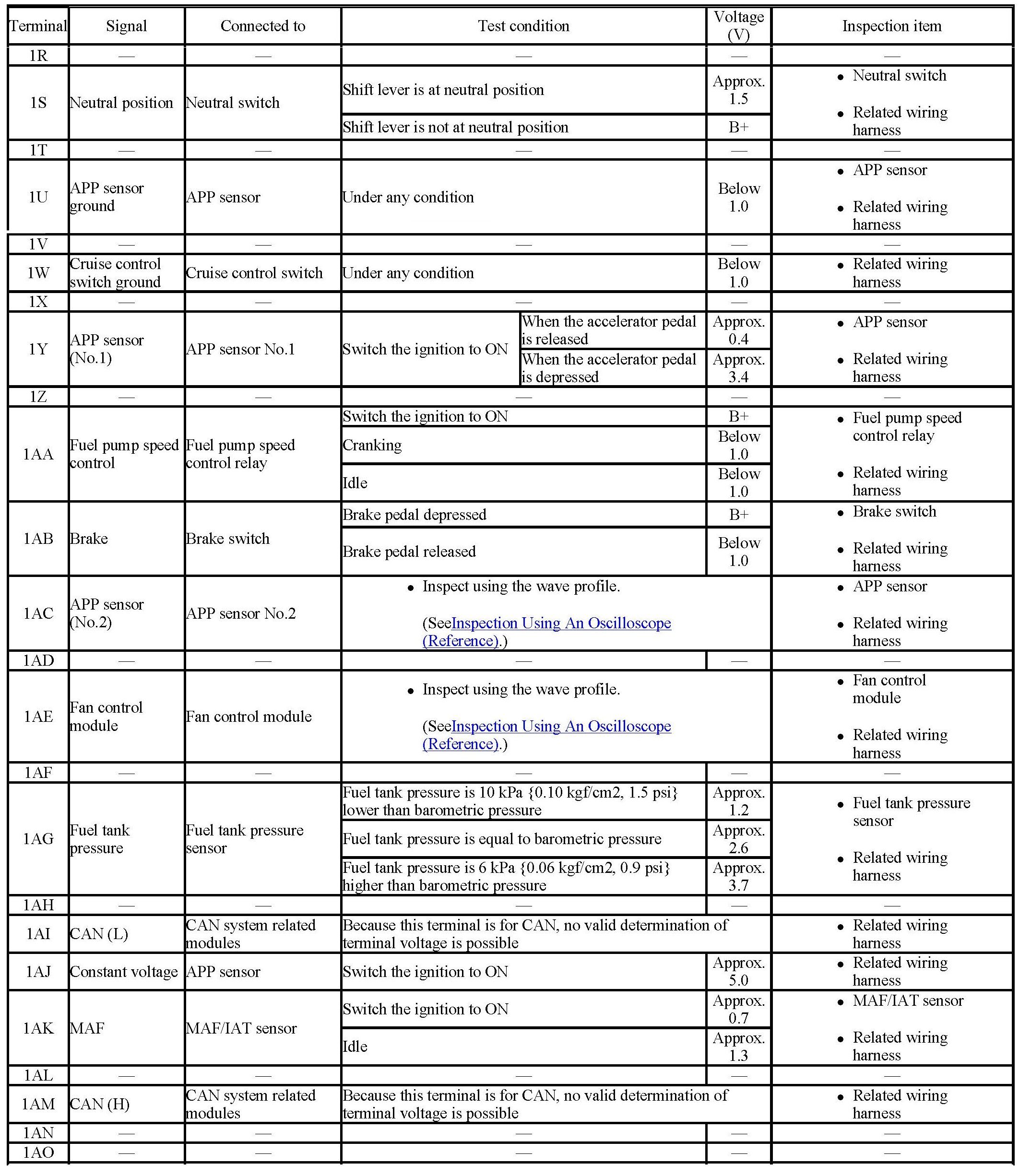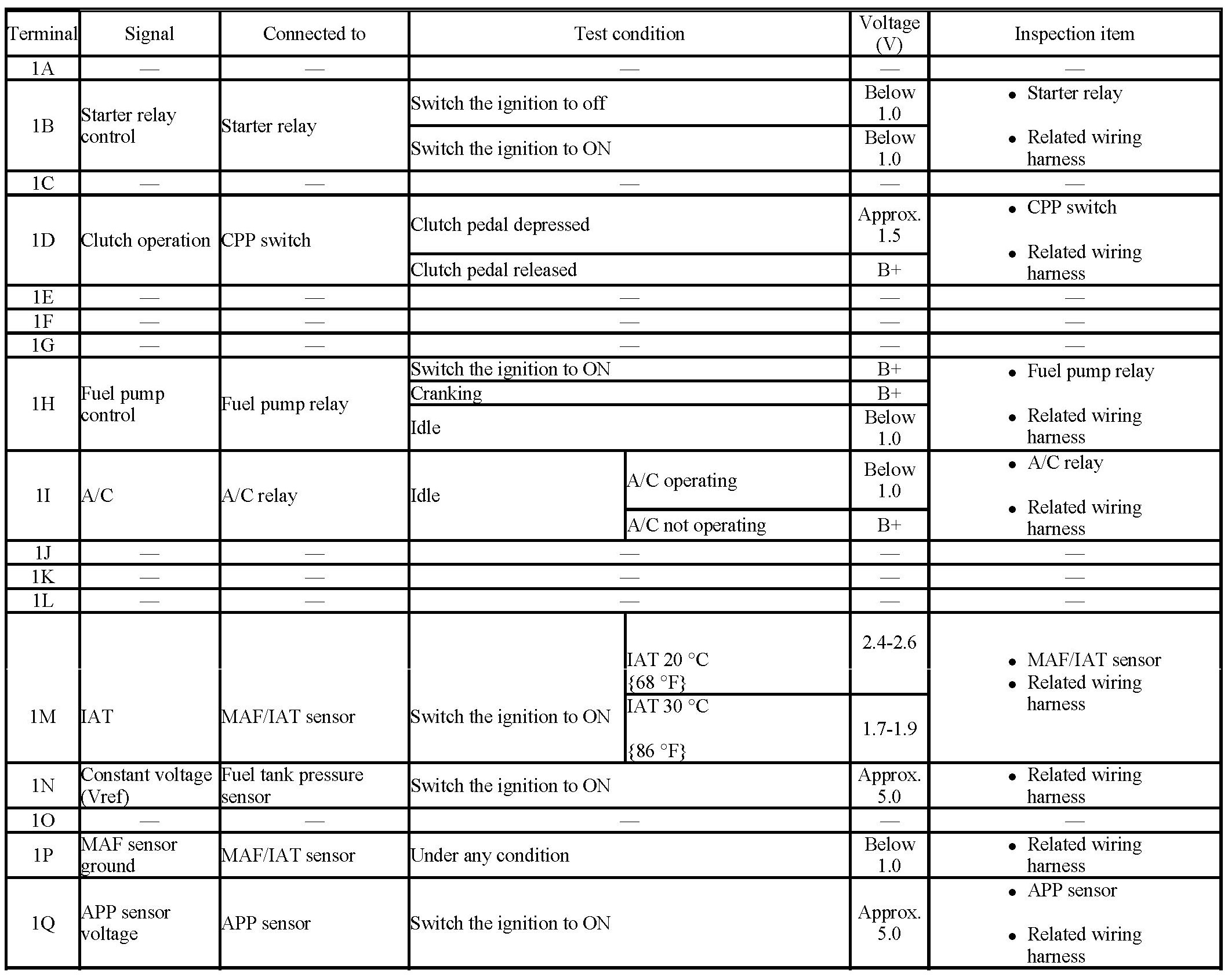 PCM terminal voltage table (Reference)