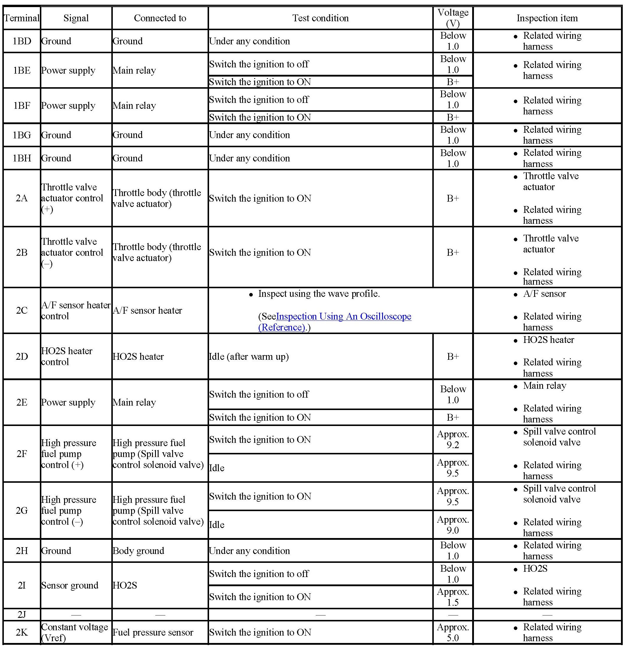 - Fuel injection No.2, No.3: 2BH (+)-->body ground (-)